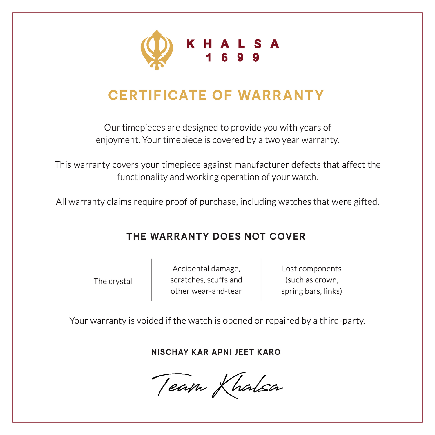 We believe everyone who carries a Khalsa watch on their wrist will find victory in every step and every moment to be marked and counted by the Khanda Sahib.
