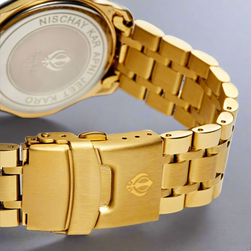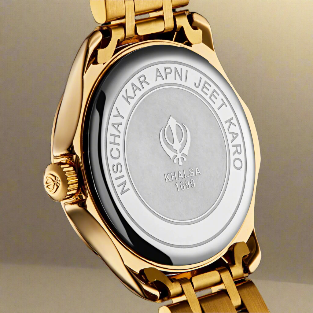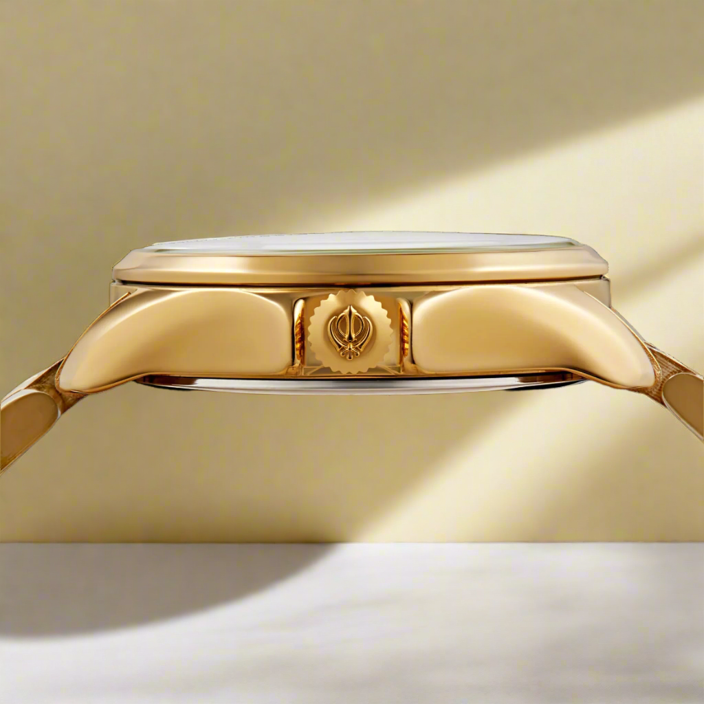 The Heritage makes a bold statement wherever you are. The gold dial proudly features an unmissable, large-set gold Khanda Sahib so you can carry strength and fearlessness with you always.