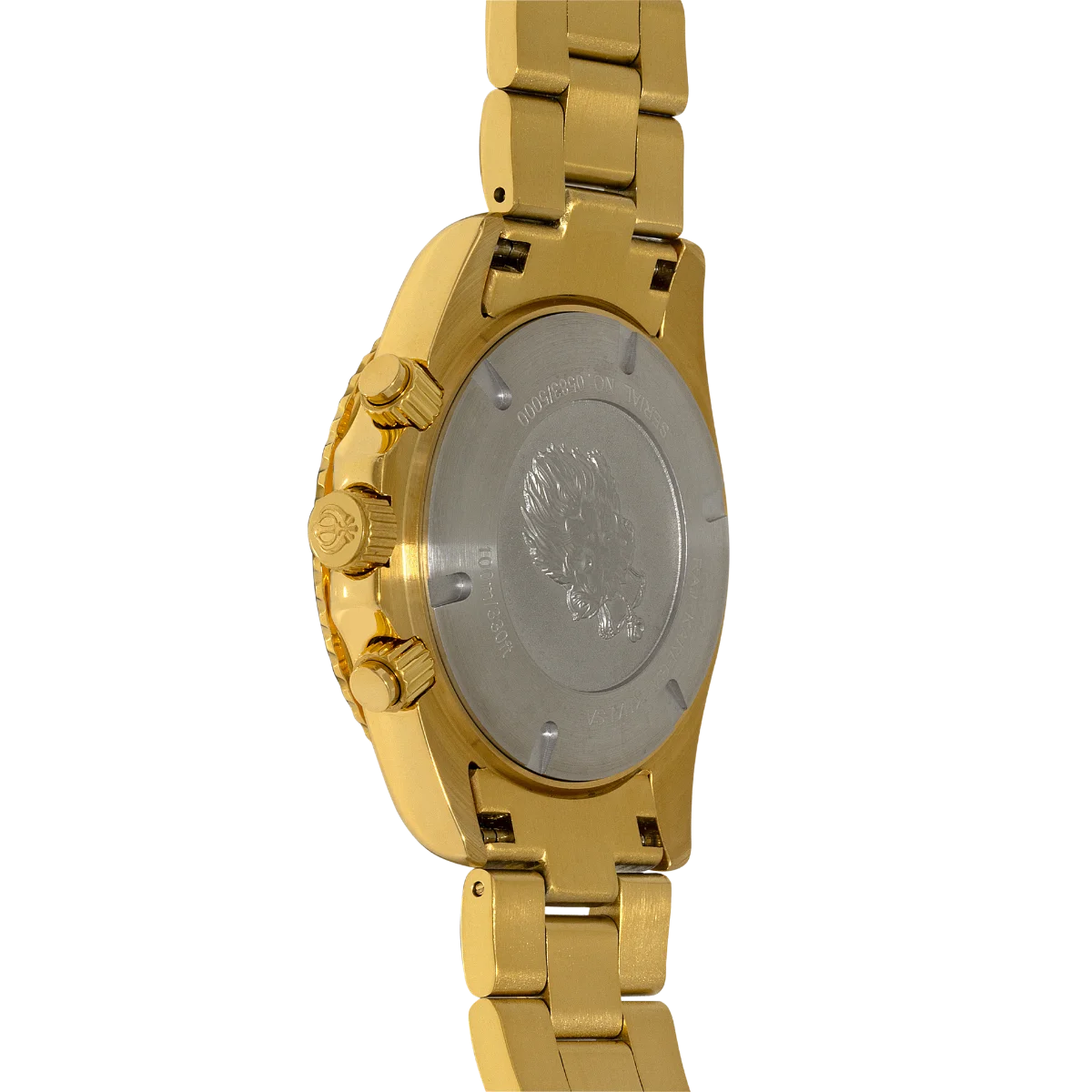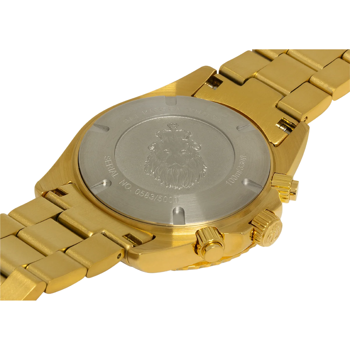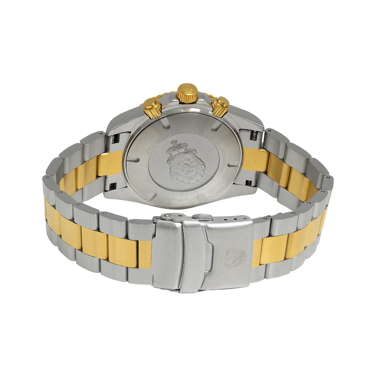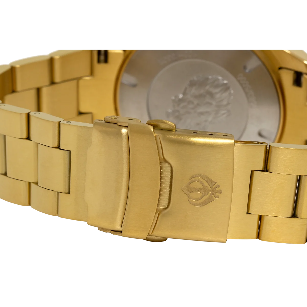 This exquisite watch features a 43 mm polished stainless steel case with a captivating two-tone finish, exuding a perfect blend of sophistication and sportiness. The deeply etched lion's head and Khalsa crown on the case back add a touch of regality, creating a watch that is as much a symbol of tradition as it is of modern design.